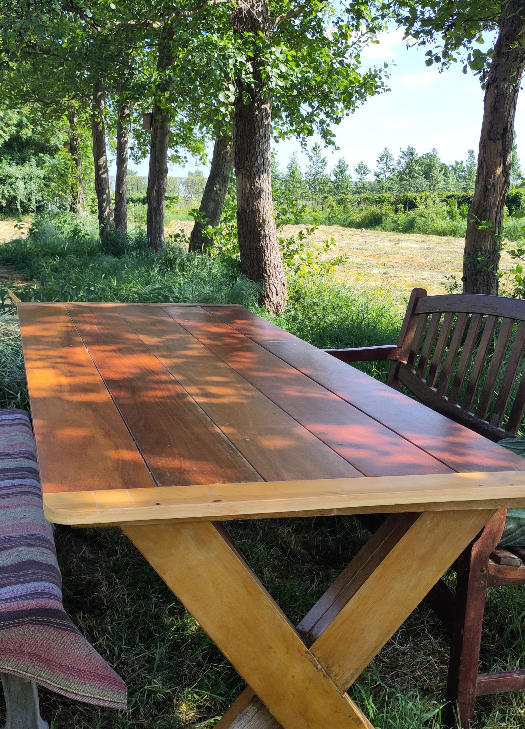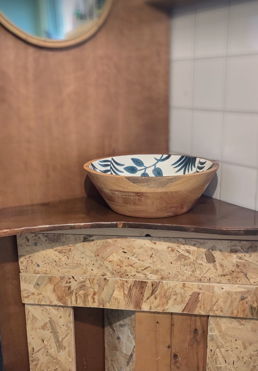 Ik werk graag met hout, en daarvan maak ik eenvoudige dingen, zoals een palletbank, een badkamermeubel, een keukenblad.